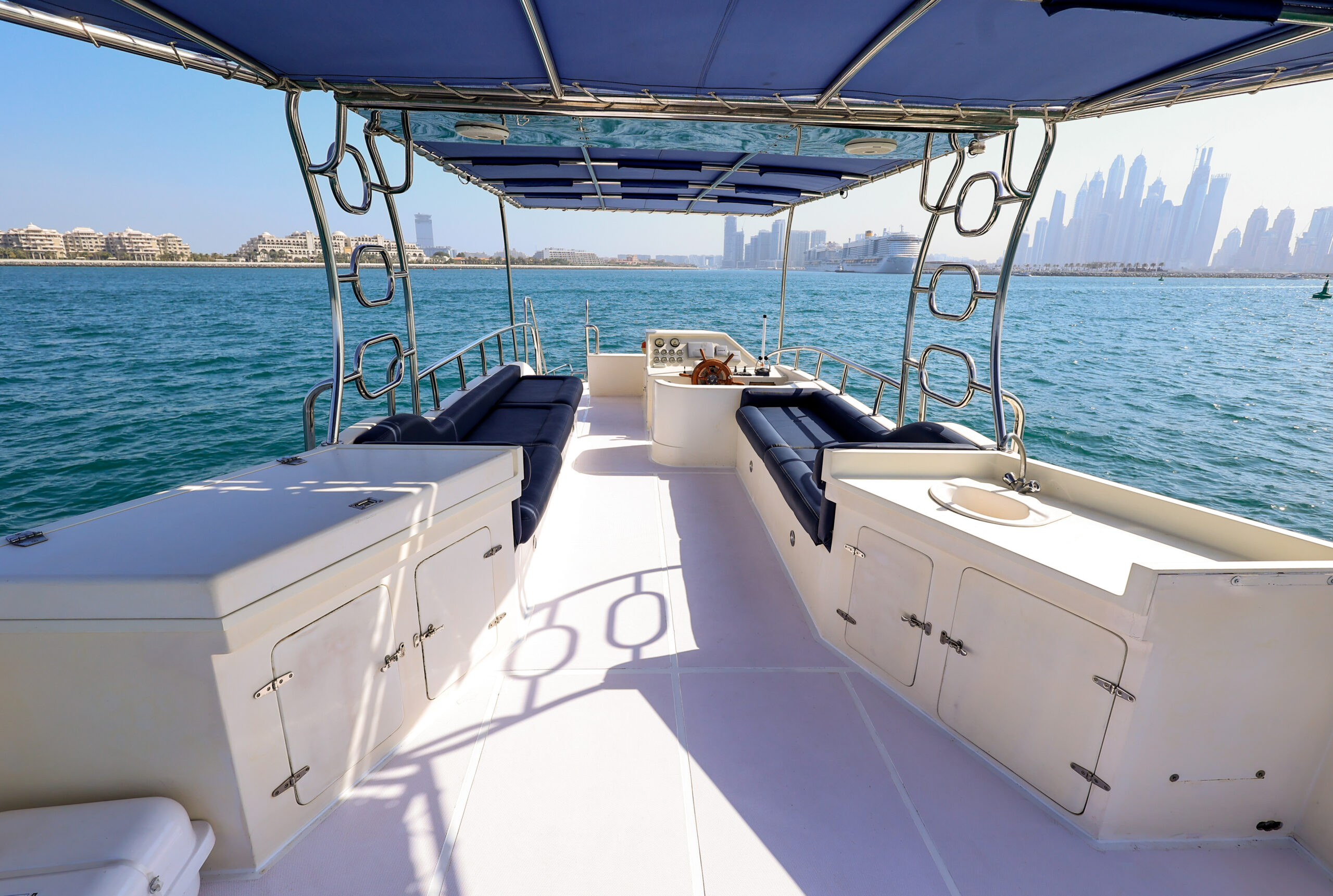 Experience smooth and spacious cruising aboard this 55ft Catamaran, designed for exceptional stability and comfort on the water. Ideal for family outings, intimate celebrations, or relaxing escapes, it accommodates up to 15 guests while you enjoy Dubai’s breathtaking coastline.