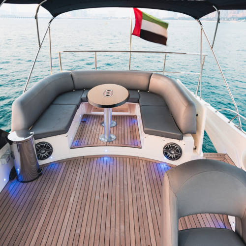 With refined interiors and beautifully designed lounges, the Sealine delivers a luxurious yachting experience, starting from AED 1,100 per hour.