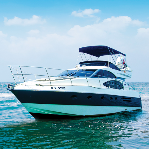 Set sail on Naughty, a sleek 52ft yacht designed for comfort, leisure, and intimate moments on the water. With space for up to 15 guests, it’s the ideal choice for small celebrations, family outings, or relaxing cruises along Dubai’s beautiful coastline.